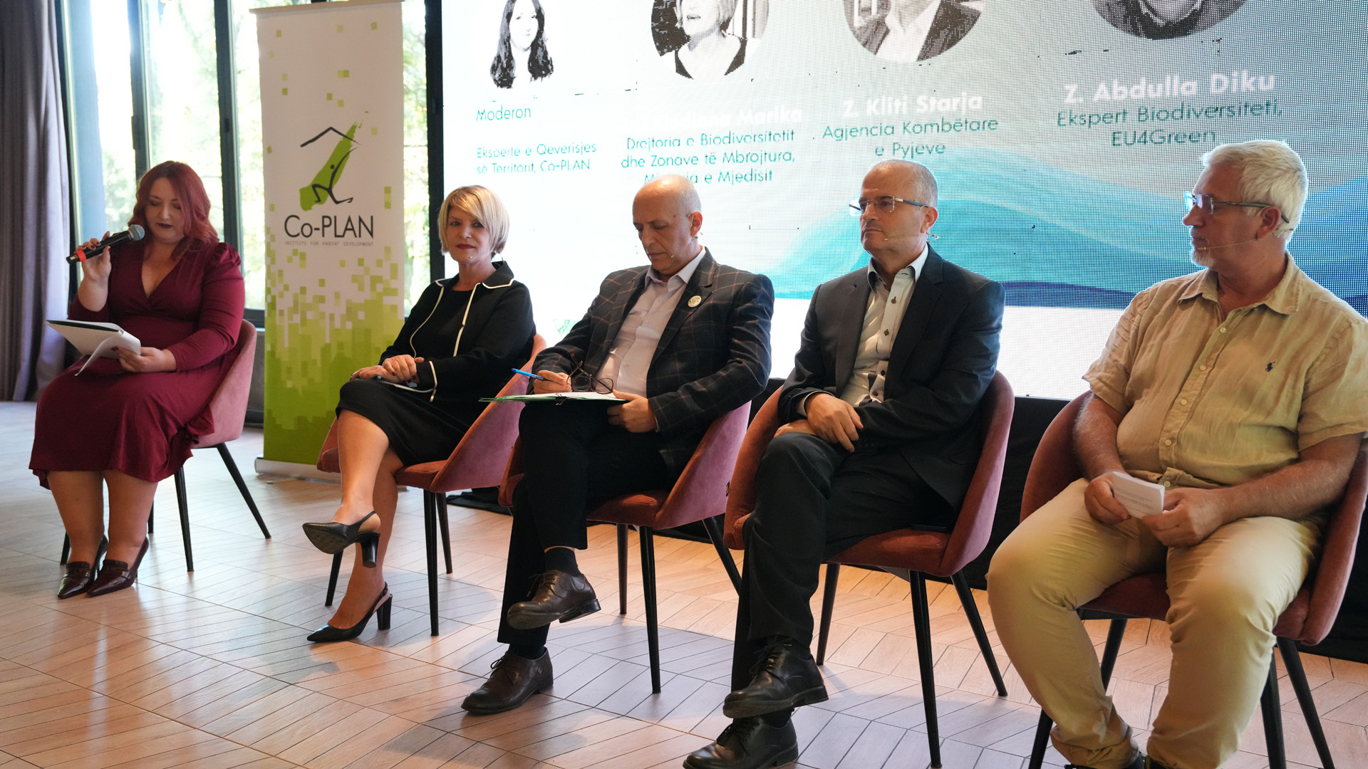 Paneli i parë “Sfidat institucionale të menaxhimit të ekosistemeve”, solli perspektiva të ndryshme mbi zbatimin e politikave mjedisore, përafrimin me legjislacionin evropian, mbrojtjen e pyjeve dhe vlerësimin shkencor të zonave të mbrojtura. Diskutimet nxorën në pah nevojën për më shumë koordinim, monitorim dhe përfshirje të komuniteteve lokale, shtim të kapaciteteve teknike dhe financiare nga ana e institucioneve publike.