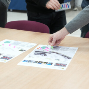 Përgjatë gjithë javës, Shkolla Dimërore u shndërrua në një hapësirë dinamike për eksplorim dhe mësim praktik. Një tur i udhëhequr nëpër Tiranë u ofroi pjesëmarrësve një kuptim më të thellë mbi formën urbane të qytetit, modelet e zhvillimit dhe sfidat hapësinore, duke theksuar nevojën për ndërhyrje inovative dhe të përshtatura me kontekstin lokal. Të ndarë në grupe pune dhe të shoqëruar nga mentorët e tyre, studentët realizuan observime në terren në lagje të ndryshme, duke mbledhur të dhëna mbi hapësirat publike, performancën mjedisore dhe nevojat e komunitetit. Ky hulumtim në terren shërbeu si bazë për fazën bashkëpunuese të dizenjimit, ku pjesëmarrësit analizuan sfidat dhe nisën formulimin e zgjidhjeve të bazuara në natyrë (NBS) për transformimin e lagjeve parafabrikate në Tiranë.